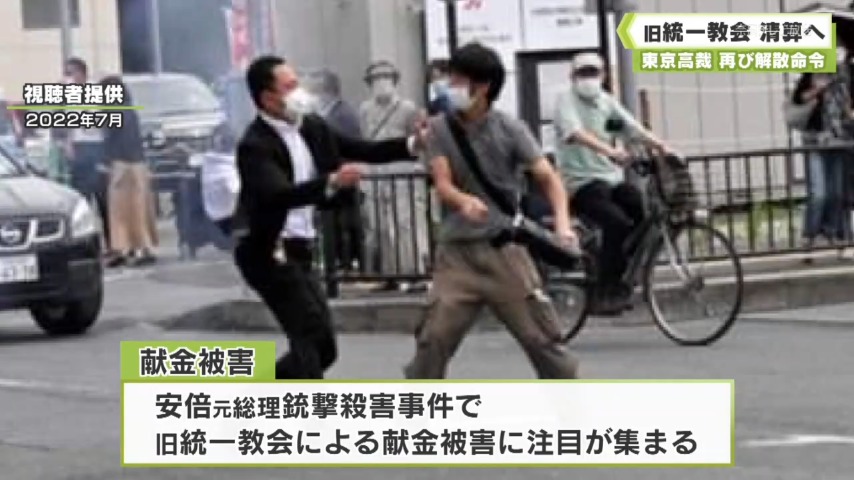 宗教法人法が要件とする「法令違反」を理由とした解散命令は、オウム真理教などに続いて3例目です。過去の2例は刑事事件化した犯罪行為が理由になりましたが、甚大な被害が生じた献金勧誘という、民法の不法行為を理由にしたのは今回が初めてです。