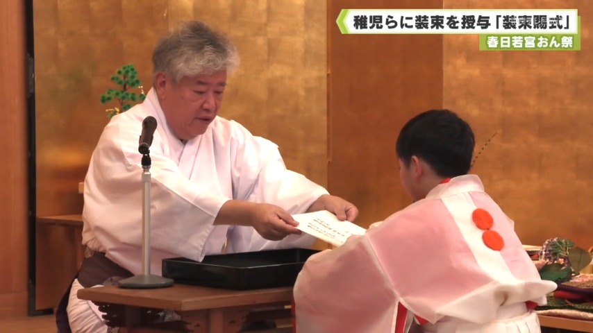 春日若宮おん祭 稚児らに装束を授与「装束賜式」