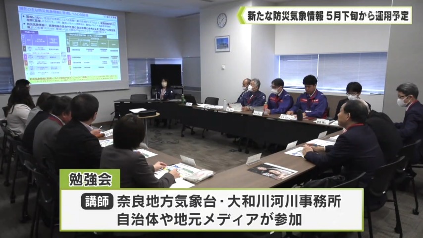 5月下旬から新たな防災気象情報の運用が始まるのを前に18日、地元メディアなどに向けた勉強会が奈良市内で開かれました。