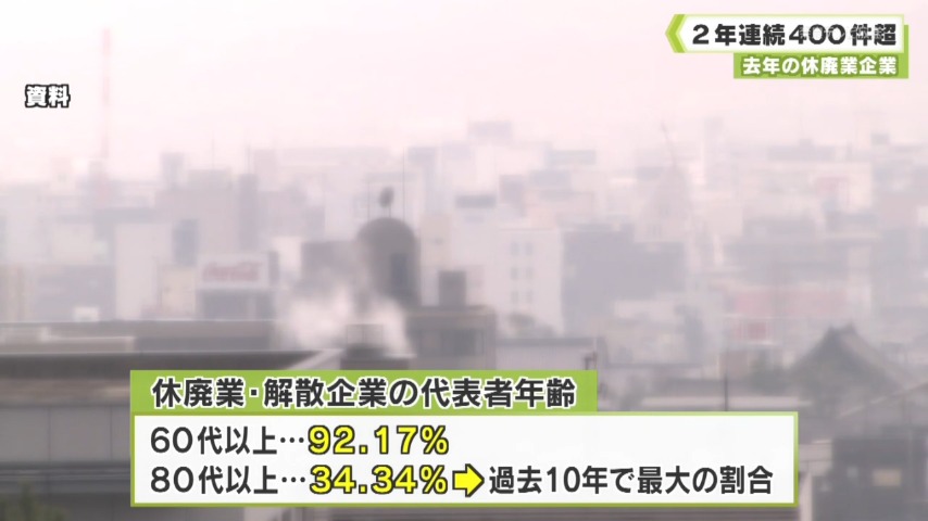 「事業承継」が課題 去年の「休廃業・解散」企業 2年連続400件超