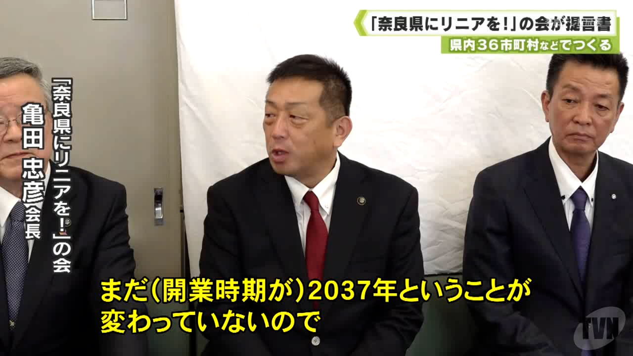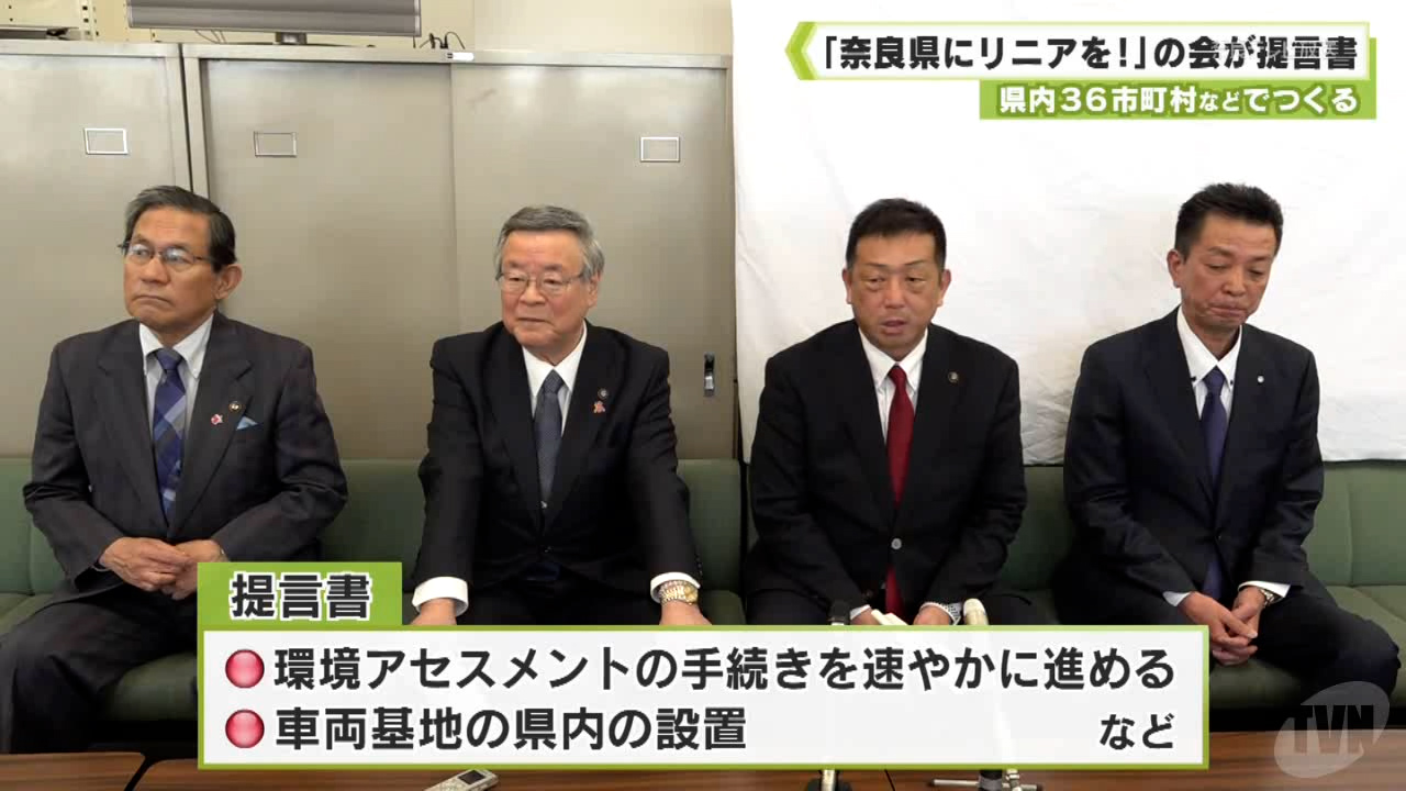 10日、山下知事に手渡した提言書には、環境アセスメントの手続きを速やかに進めることや、車両基地の県内の設置などが盛り込まれています。そして中間駅についてはJRや近鉄が交わり、高速道路にも近い場所が最適地として、会では大和郡山市をあげています。