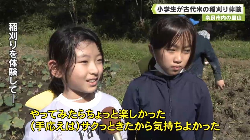 - 奈良市内の里山に整備された田んぼで、地元の小学生が、授業の一環で植えた稲を収穫しました。