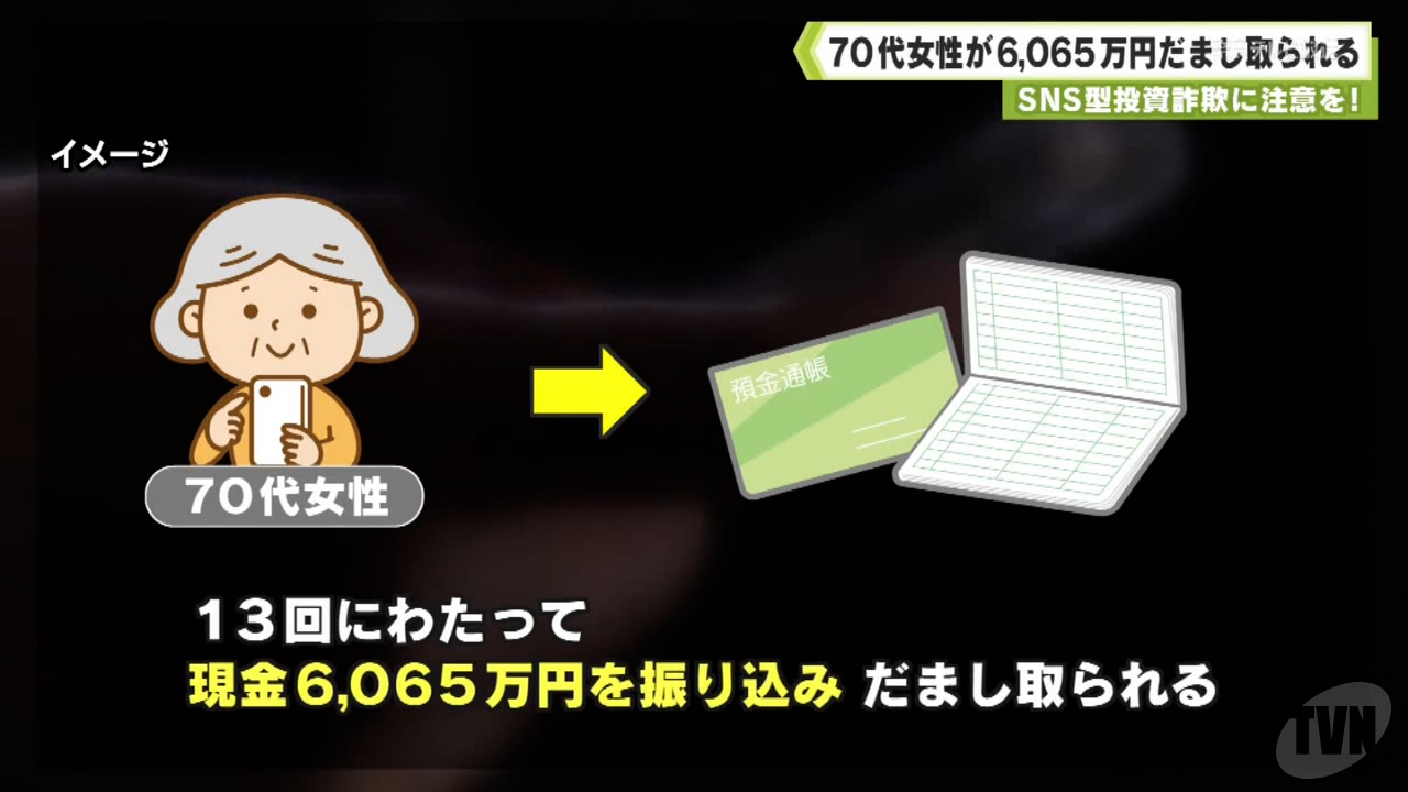 SNS型投資詐欺に注意を!70代女性 6065万円だまし取られる