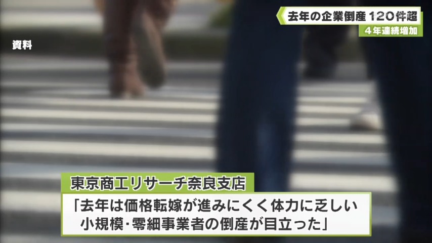 - 東京商工リサーチ奈良支店では「2025年は物価高の中で、価格転嫁が進みにくく、財務体力に乏しい小規模・零細事業者の倒産が目立った。2026年も引き続き賃上げ圧力や金利の上昇など、企業の自力回復が進みにくい環境が続くと予想され、倒産件数は増加基調が続くおそれがある」としています。