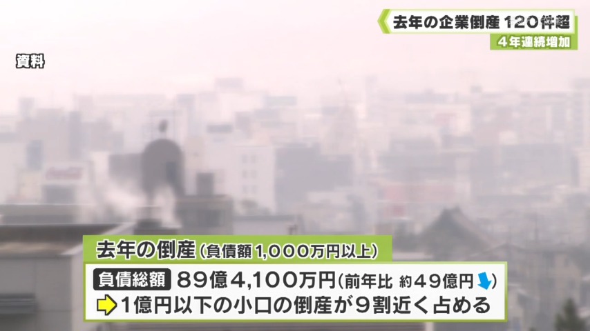 - 県内で2025年、1年間に倒産した企業は124件で、4年連続で増加したことがわかりました。