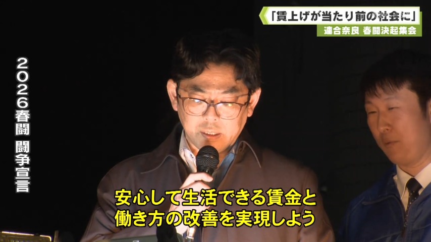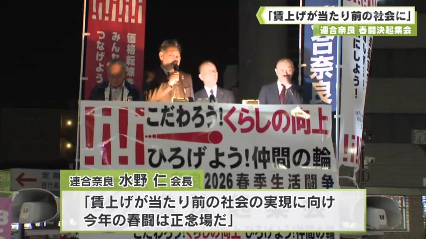 連合奈良の水野仁会長は、賃上げが当たり前の社会の実現に向け、2026年の春闘は正念場だと訴えました。