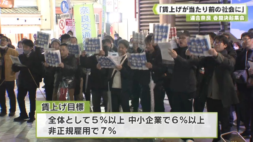 春闘での本格的な労使交渉を前に、連合奈良が6日、決起集会を開き「賃上げが当たり前の社会」の実現に向けアピールしました。