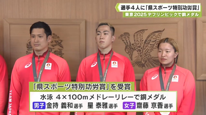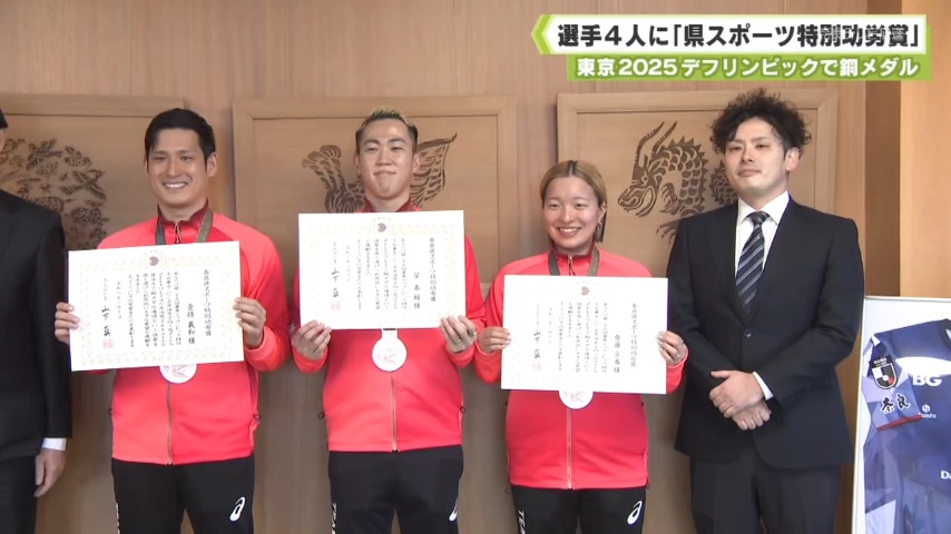 東京2025デフリンピックで活躍 柔道・水泳の選手4人に「県スポーツ特別功労賞」