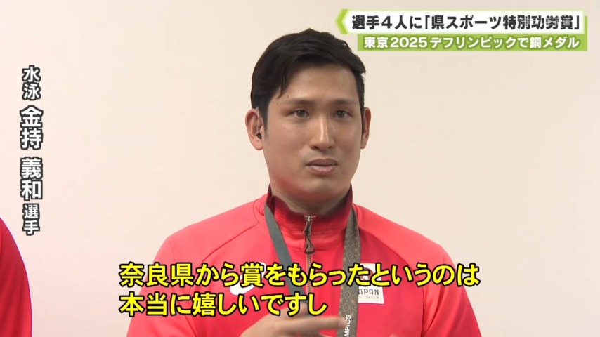 10日は県庁で表彰式が行われ、山下知事から4人の選手に賞状が手渡されました。今回のデフリンピックで日本選手団は、過去最多となる51個のメダルを獲得。奈良県ゆかりの選手の活躍も光りました。