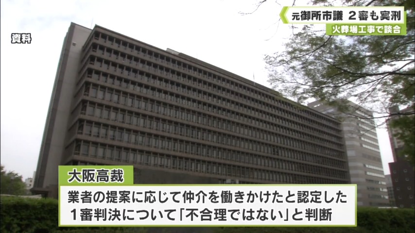 火葬場工事で談合 元御所市議 2審も実刑