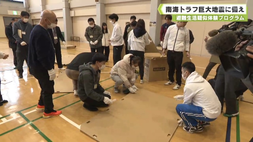 南海トラフ巨大地震の発生リスクが高まる中、避難生活を疑似体験するプログラムを近鉄グループホールディングスなどが実施しました。