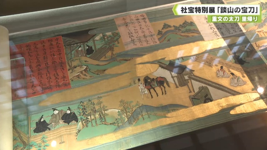 13世紀・鎌倉時代の作とされ、一見、荒々しく不規則な刃文ですが、華やかさがあり、当時の技術の高さをうかがわせます。会場にはこのほか、公開する機会がほとんどなかった鎌倉・室町時代の刀剣が展示されています。大化の改新から1380年となる2025年。特別展では、多武峰の歴史を描いた絵巻物なども展示され、神社の背景も伝えています。