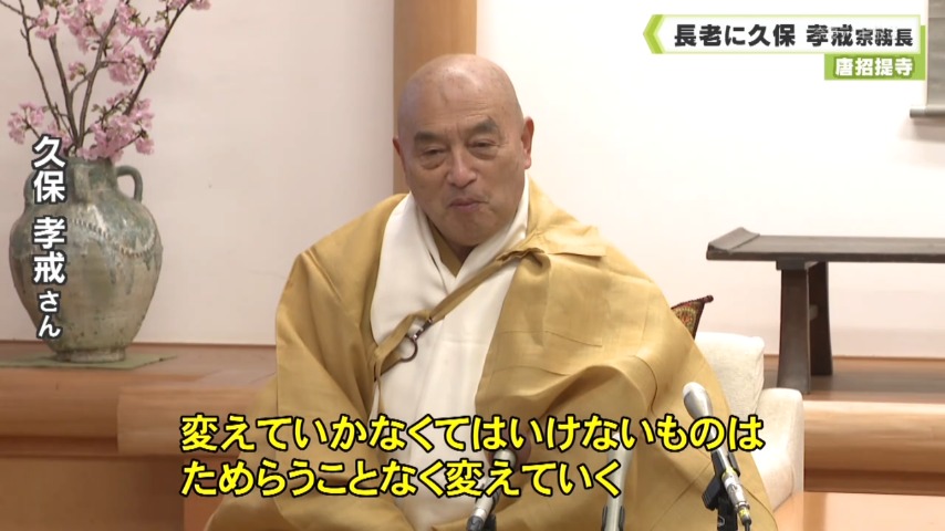 - 奈良市にある唐招提寺の第90世長老に就任する久保孝戒さんが6日、会見を開き抱負を述べました。