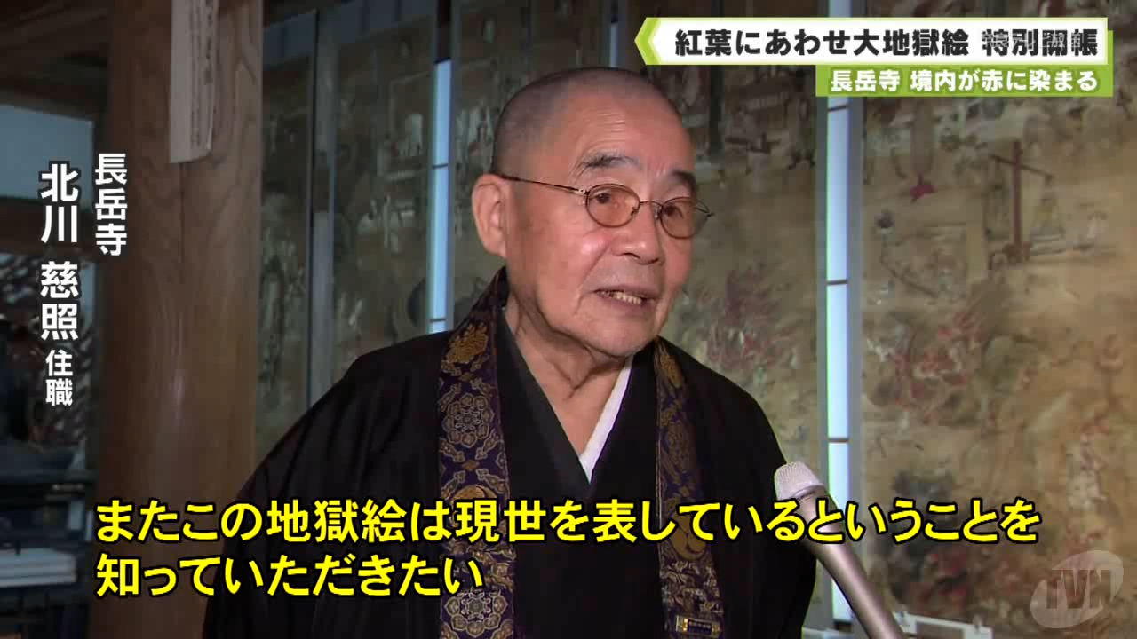 「仏様から地獄の鬼まで、私たちの心の中に内在しているということを、やっぱり知っていただきたいし、またこの地獄絵は現世を表しているということを知っていただきたい。同時に外の素晴らしいモミジの景色を、見ていただきたいということです」