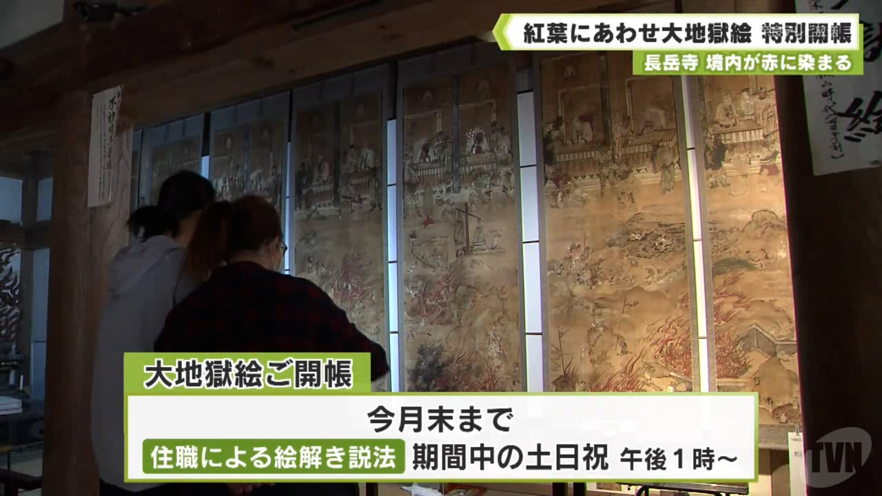 大地獄絵の公開は、11月末まで行われ、期間中の土日祝日には、午後1時から、住職による絵解き説法が行われます。