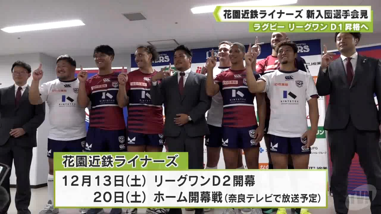 - 国内最高峰のラグビーリーグ・リーグワンの開幕に向けて花園近鉄ライナーズが新入団選手を発表し、リーグ1部にあたるDIVISION1(ディビジョン・ワン)復帰へ決意を示しました。
