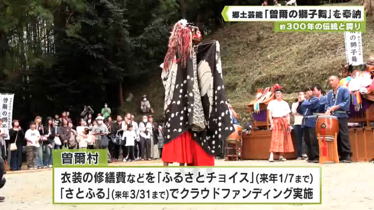 2025年は大阪・関西万博で披露され注目も集まった曽爾の獅子舞。一方で、衣装の修繕費などの資金が不足していることから、村ではクラウドファンディングを始めたといいます。守り伝えてきた獅子の美しい舞を次世代につなげるための活動が始まっています。