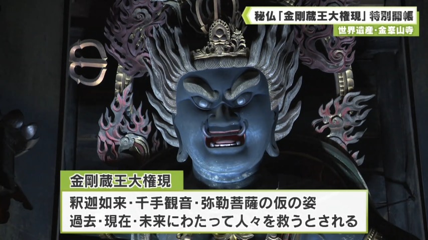 金峯山寺では、参拝者を迎える国宝・仁王門の大修理を行っています。寺は修理の寄付を募るため、春と秋の年2回、本尊「金剛蔵王大権現」を特別に公開しています。