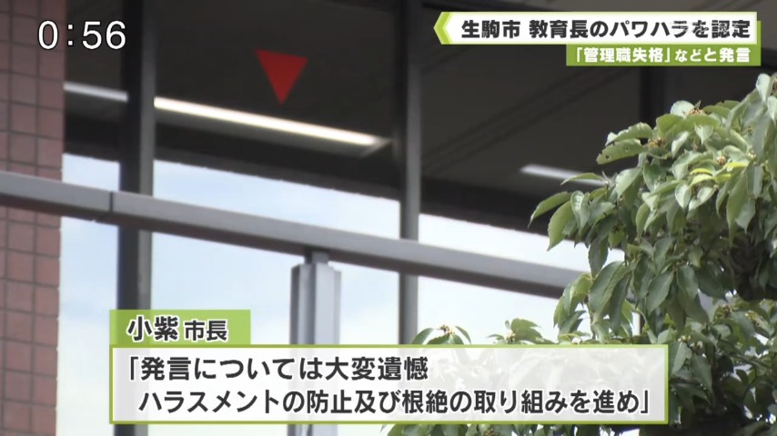 - 生駒市は、教育長が市立学校の校長に対し不適切な発言をしたとして、パワーハラスメントと認定したと発表しました。