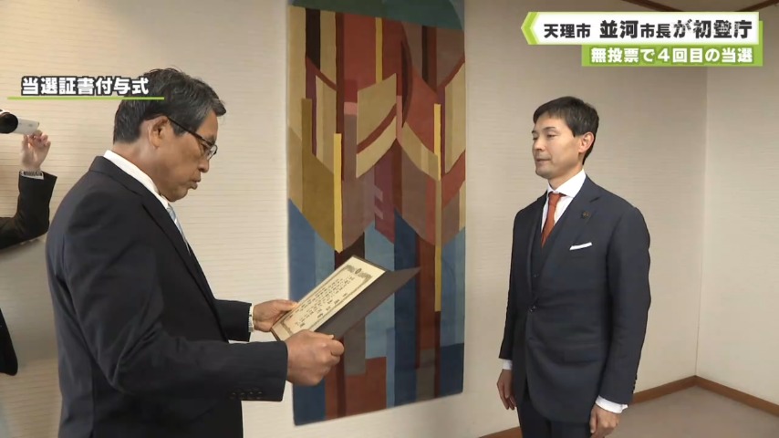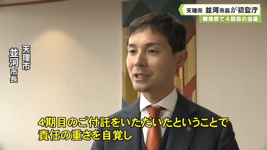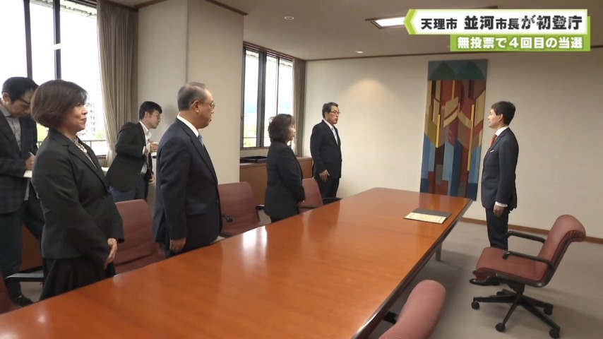 天理市長選挙で、無投票で4回目の当選を果たした並河市長が20日、初登庁しました。