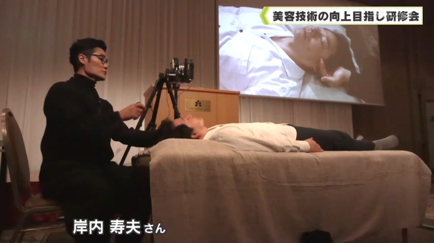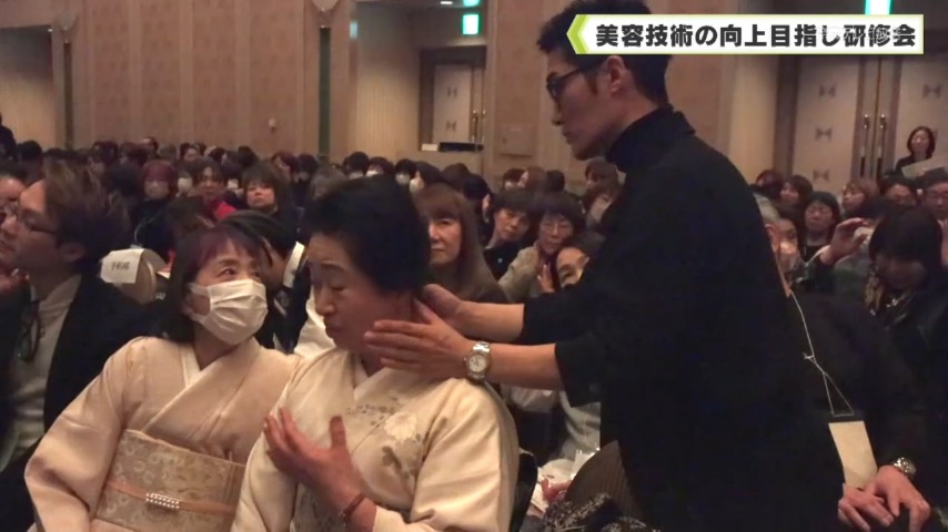 - この研修会は、美容師などを対象に技術の向上を図ろうと開かれたもので、ヘッドスパに特化した技術者岸内寿夫さんらが講師を務めました。