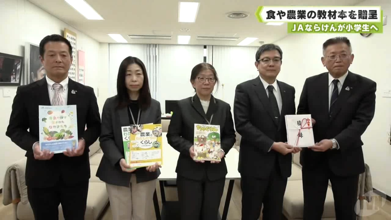 - 贈られたのは、県内で生産される農産物を紹介した小学校高学年向けの冊子「奈良の畑で生まれたなかまたち」などです。この取り組みは、子どもたちが食や農業などへの理解を深めることを願い、JAならけんが2008年から毎年行っています。