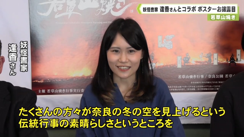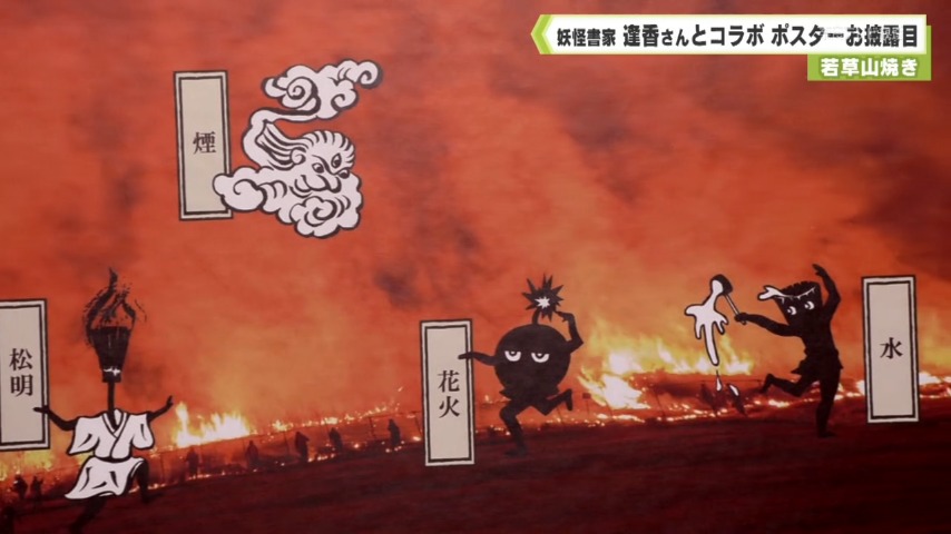 - 妖怪書家・逢香さんとコラボした、古都・奈良の伝統行事「若草山焼き」のポスターが完成し15日、お披露目されました。