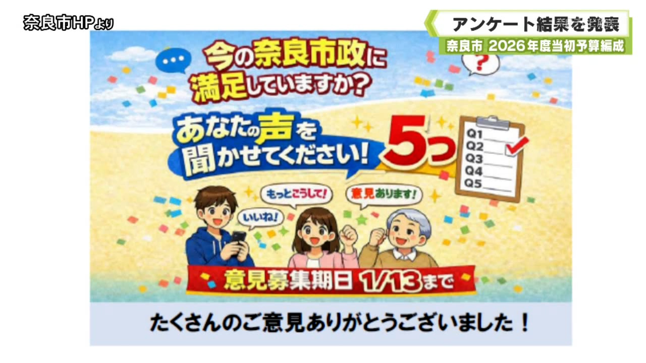 2026年度当初予算の編成を進める奈良市では、各部局からの要望段階にある内容を公開し、市民から意見を募るアンケートを実施しました。