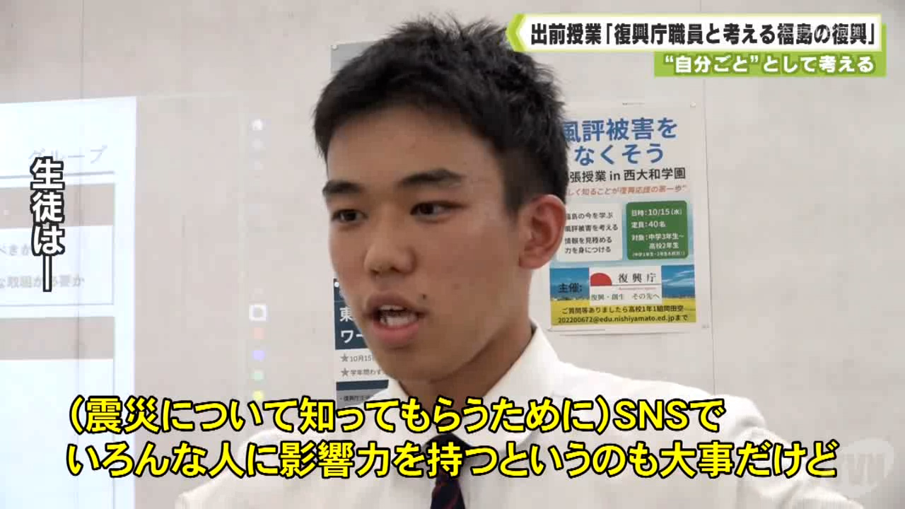 復興庁は2022年度から全国の中高生に向けた出前授業を行っています。県内で初めて授業が行われた西大和学園では中学3年生から高校2年生までの生徒約40人が参加しました。