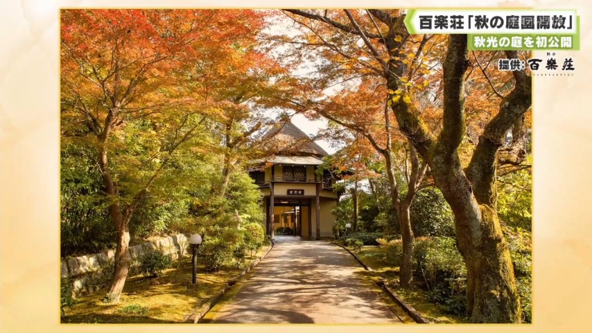 - 百楽荘「秋の庭園開放」は11月29日と30日で、入場は11時半から17時までとなっています。