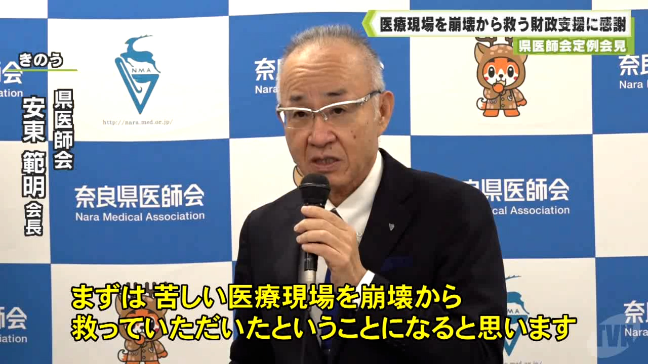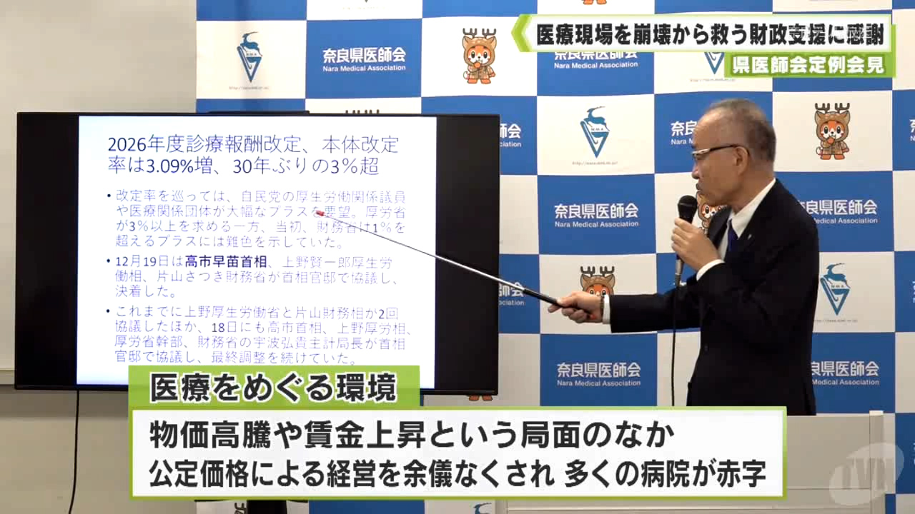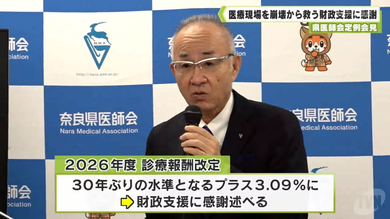 奈良県医師会の安東範明会長は25日の記者会見で、医療への財政支援を盛り込んだ2025年度補正予算の成立などを受け、感謝を示しました。