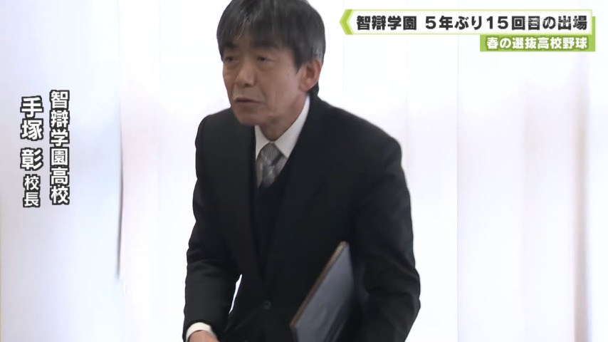 手塚校長はその後、学校のグラウンドに向かい、チームを率いる小坂将商監督と選手たちに選抜出場を伝えました。今シーズンの智辯学園は、エースの杉本を軸に多彩な投手陣と、キャプテンの角谷を中心とした攻撃力が光り、投打ともに充実しています。去年秋の県大会では優勝。続く近畿大会でも準優勝を果たしましたが、2つの大会で継続試合を経験するなか、集中力を切らさない粘り強さで、接戦をものにしてきました。