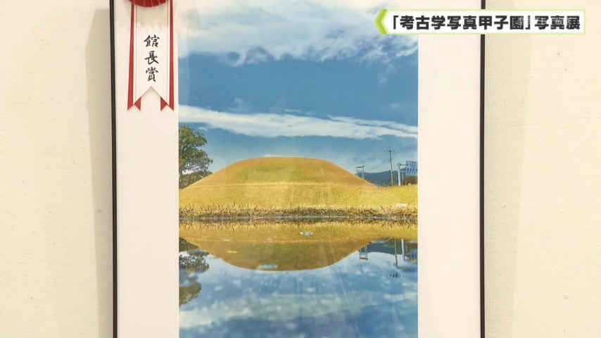 群馬県や岡山県など、全国各地の小中学生や高校生などから39点の応募があり、最優秀賞にあたる「館長賞」には、長崎県にある「ひさご塚古墳」を写した阿比留みのりさんの作品が選ばれました。青空と古墳が水面に鏡のように映った美しい作品です。