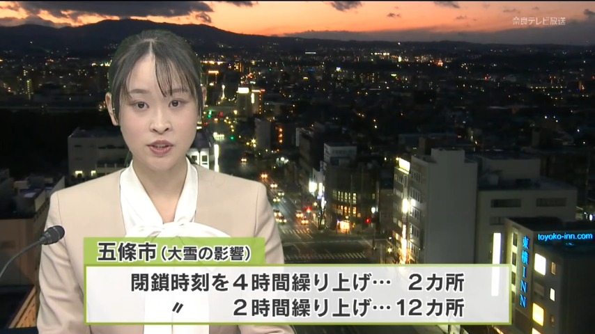 五條市選挙管理委員会は積雪の影響で投票所の閉鎖時刻を2カ所で4時間繰り上げ、12カ所で2時間繰り上げたと発表しました。