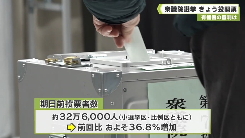 県選挙管理委員会によりますと期日前投票をした有権者の数は小選挙区・比例区ともに約32万6000人で、前回2024年の衆院選より約36.8%増加しています。投票は一部の地域を除いて8日午後8時まで行われ即日開票されます。