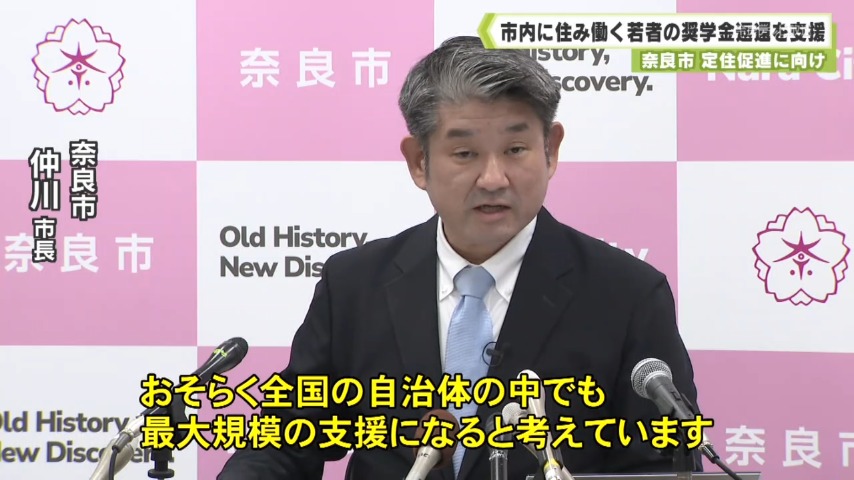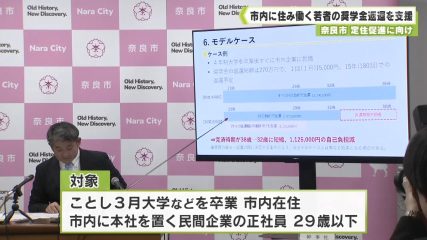 - 奈良市は若者の定住促進を目的に、市内に住みながら働く若者の奨学金の返還を支援すると発表しました。