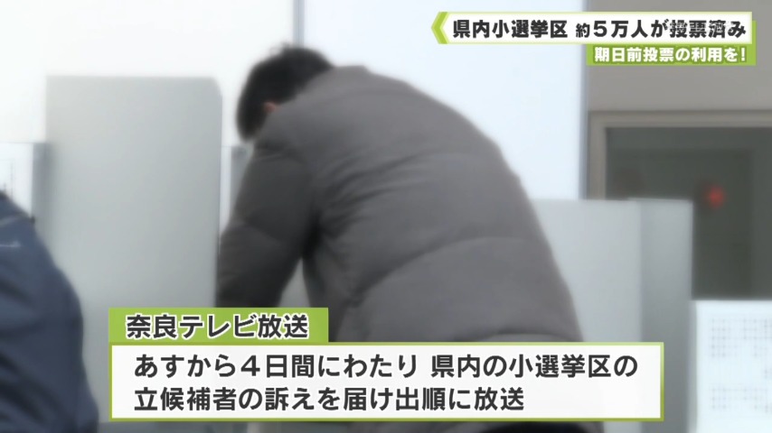 - なお、奈良テレビ放送では3日から4日間にわたり、県内の小選挙区の立候補者の訴えを届け出順にお伝えします。