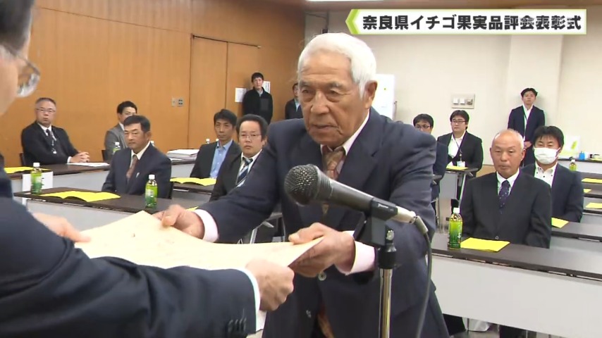- 県を代表する農産物の1つ、イチゴの品評会で優秀な成績を収めた農家が5日、奈良市内で表彰されました。