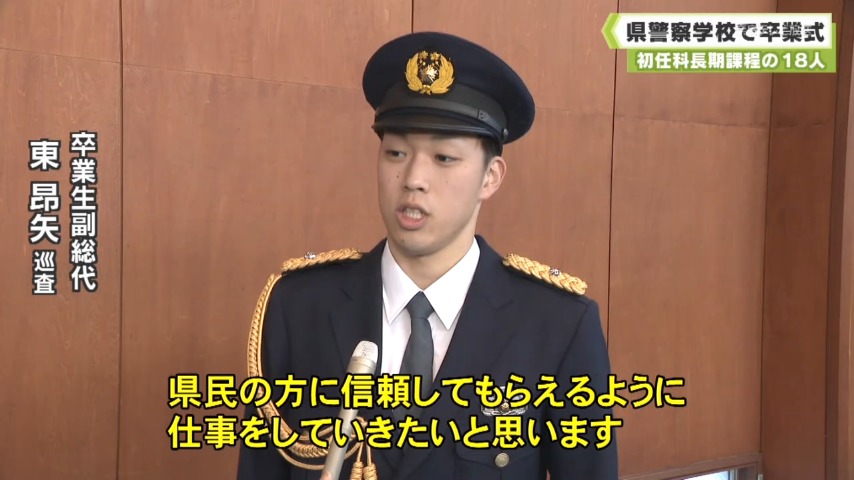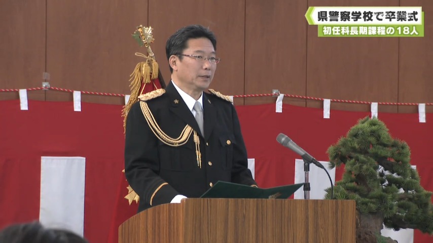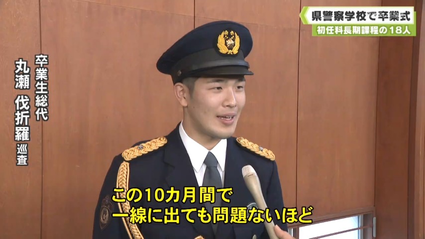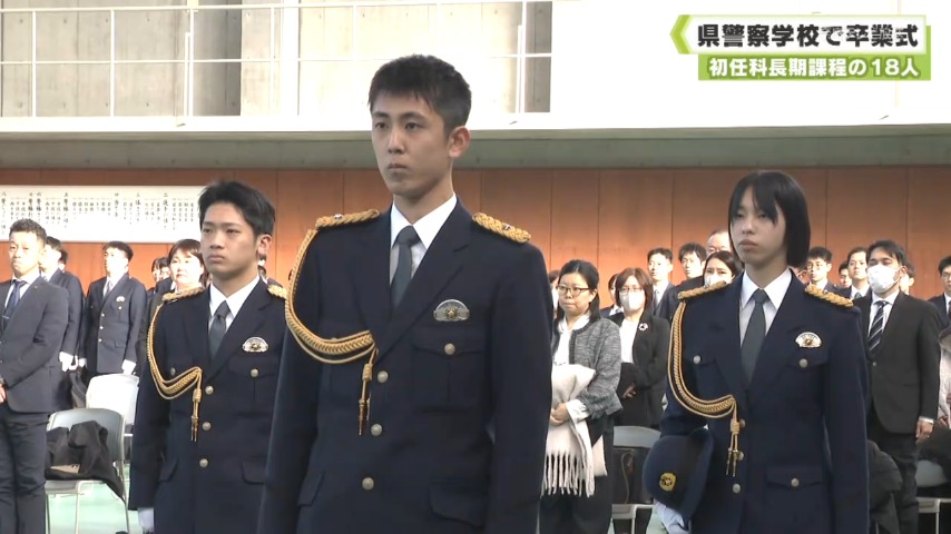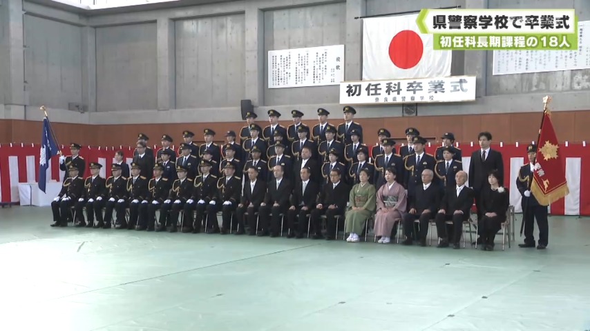 卒業式に臨んだのは、2025年4月に採用された初任科長期課程の18人で、法律や武道など、警察官に必要な教育を受けました。