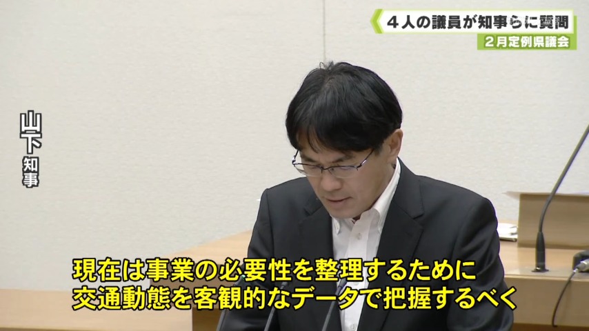 - 2月定例県議会では2日、代表質問と一般質問が行われ、4人の議員が山下知事らに県政のあり方を質しました。