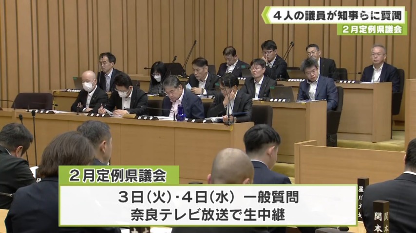 - 2月定例県議会は、3日と4日にも一般質問が行われ、奈良テレビ放送ではその様子を生中継します。