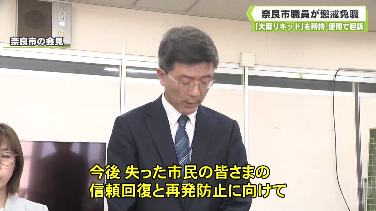- 大麻から成分を抽出した「大麻リキッド」を所持・使用したとして逮捕・起訴された奈良市の職員について市はきょう付けで懲戒免職処分としました。