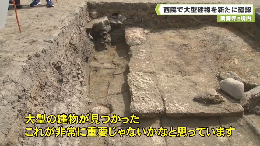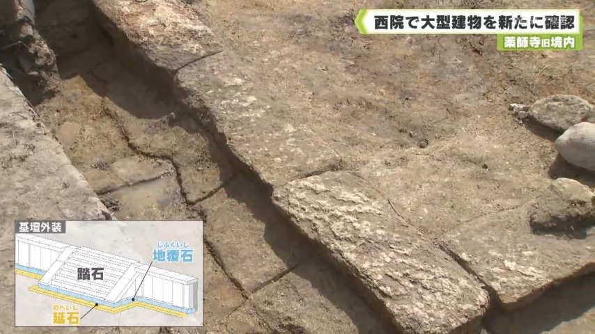 奈良文化財研究所は奈良市にある薬師寺の西側で行った発掘調査で、大型の建物の土台の一部が確認されたと発表しました。