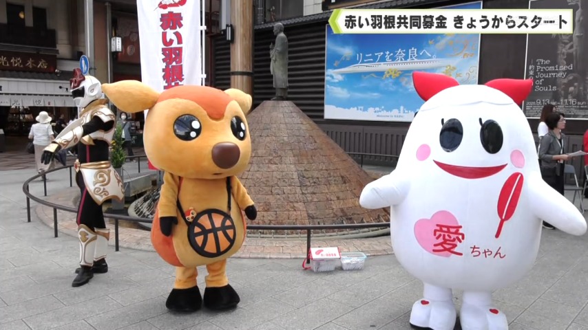 そして、共同募金のシンボルキャラクター愛ちゃんらも応援にかけつけ、ボランティアらが募金への協力を呼びかけていました。