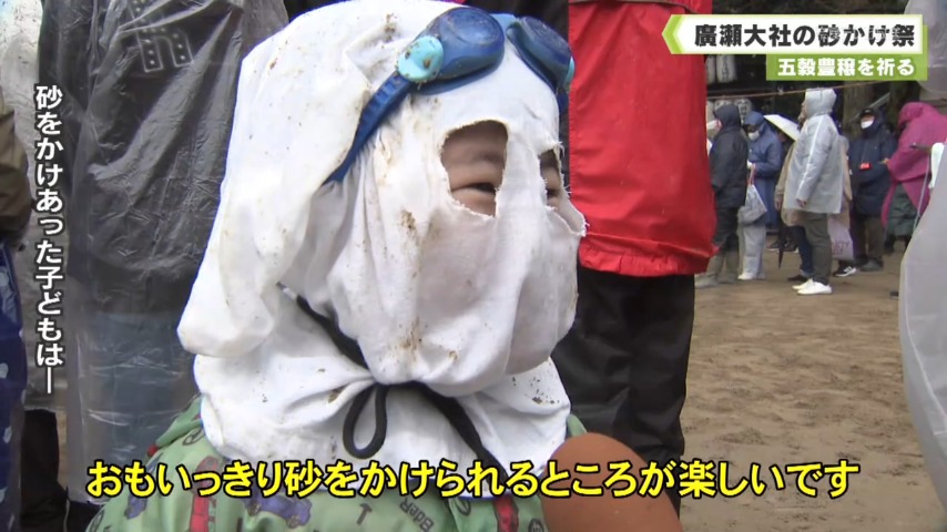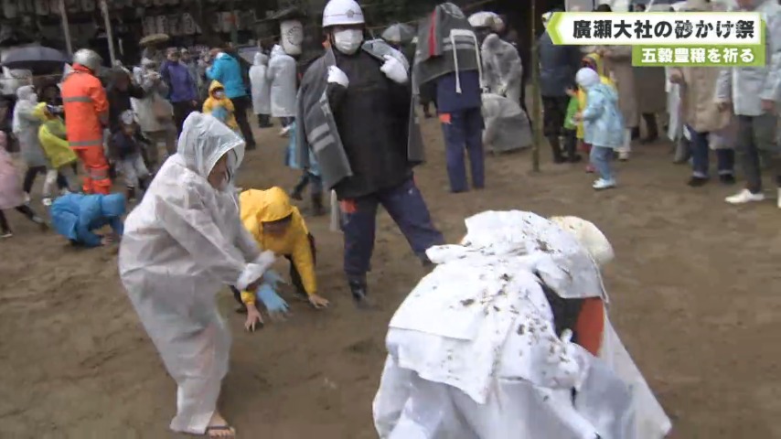 河合町にある廣瀬大社では、奇祭として知られる「砂かけ祭」が行われ、五穀豊穣を祈りました。
