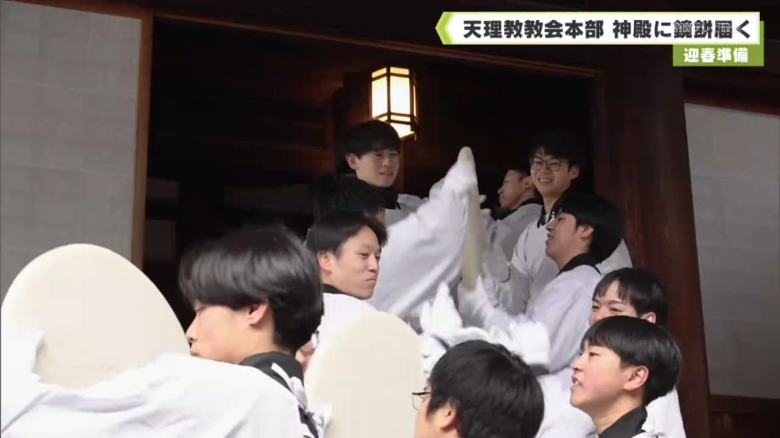 迎春準備 天理教教会本部 神殿に鏡餅届く