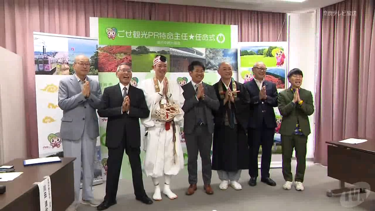 - 御所市観光協会では葛城修験の始まりの地である御所市の魅力を発信してもらおうと西手さんを観光PR特命主任に任命しました。