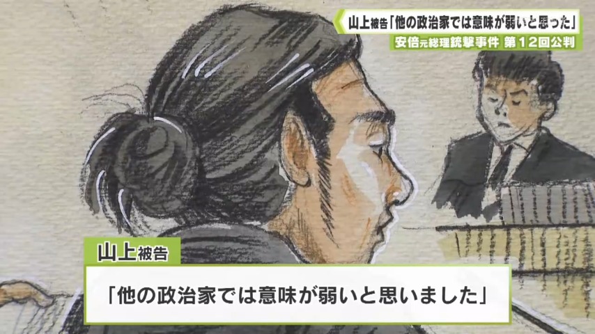 安倍元総理銃撃事件第12回公判 山上被告「他の政治家では意味が弱いと思った」