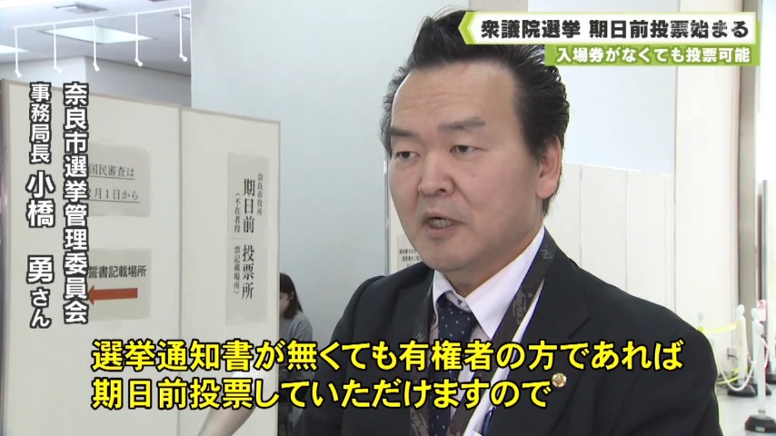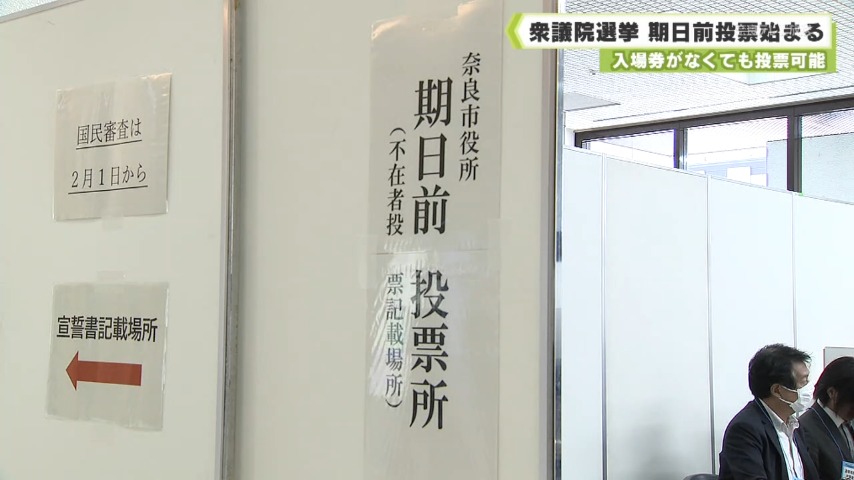 このうち奈良市役所の会場では、朝から有権者が訪れ、小選挙区、比例代表それぞれに1票を投じていました。市選挙管理委員会によりますと、急な日程の選挙なため、期日前投票所の入場券となる選挙通知書の配布が遅れているといいます。