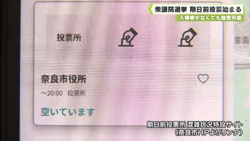 期日前投票を利用する人は増加傾向にあるといい、奈良市では、ホームページに記載している特設サイトで投票所ごとの混雑状況をリアルタイムで確認できるシステムを導入したということです。